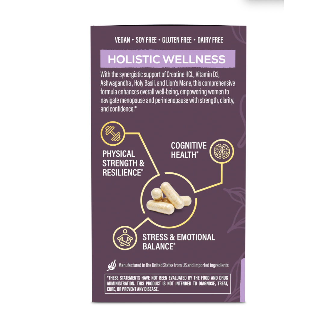 Active Creatine HCL For Her 40+ is more than just creatine — it’s daily, clean support for strength, clarity, and hormonal balance. Made with Creatine HCL and a synergistic blend of adaptogens and nutrients, this thoughtfully crafted capsule is designed to meet the unique needs of women, especially over 40. From physical energy to cognitive support and emotional balance, it’s a powerful ally for your wellness journey.